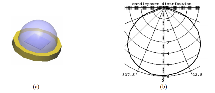 Figure 3: (a) Simulated Luxeon Emitter LXHL-PWO; (b) Candlepower distribution of the LED model.