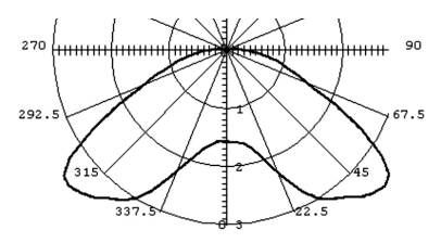 In this study, a symmetrical distribution along the fixture (0 degree direction) was desired. Therefore, a batwing distribution could be achieved by combining two identical light guides. Both had a maximum intensity at the 45 degree zenith/nadir angle, as illustrated by Figure 7.