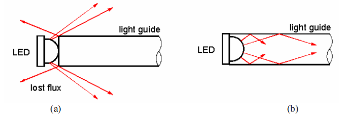 Figure 1: (a) LED external to a light guide; (b) LED located inside a light guide.