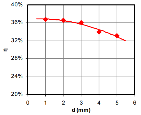 Figure 10: The efficiency of the light guides as a function of distance between prisms.