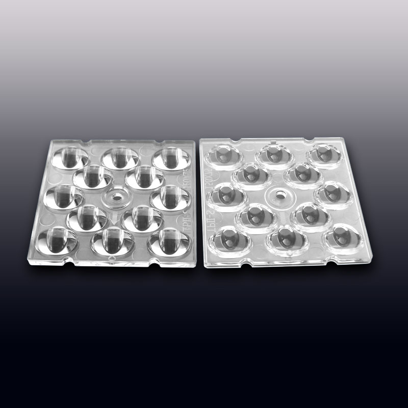 4x4 arrays 50 x 50 mm LED lens for 2525, 3030, 3535 LEDs, suitable for flood lights, tunnel lights, stadium lights, parking lot lighting, and high bay lighting. (HX-F4x4-xx Series)