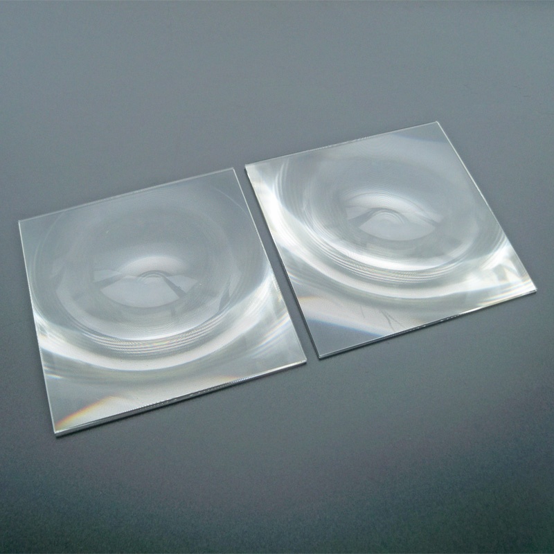 Fresnel concentrated photovoltaic lens is one of the core components of the third generation of high concentrated photovoltaic solar power generation, as a precision optical device.It can increase the power generation of solar panels several times. At present, our company has several single-point diamond lathes, which are open in design and can produce giant Fresnel lenses with a diameter of less than 2200mm.It can be used in solar power stations, outdoor sun cover kitchen utensils, etc. Glass-based silicon material Fresnel concentrating lenses and solar panels generally adopt box design to achieve the desired effect. The Fresnel concentrating lens used in the solar cell array is a precision optical component. Because it needs to work in the outdoor atmosphere for a long time, this product uses ultra-clear tempered glass as the substrate, and the silicone gel molded Fresnel lens is attached inside. Lenses, precision fine thread molding process, ensure high refractive index, reduce light loss to expectations; and with high strength, high light transmittance and aging resistance, anti-ultraviolet radiation, weather resistance and other characteristics, improve solar cells Several times the power generation. According to the customer's concentration ratio and solar panel size, the opposite side size of the Fresnel lens and the distance from the Fresnel lens to the solar panel can be designed so that the light concentration can achieve the expected effect, and it should be installed in a sun-tracking on the photovoltaic power generation system of the device. Fresnel lens has the advantages of ultra-thin structure, ultra-large size, ultra-light weight, arbitrary shape cutting, excellent light transmittance, low price, light and easy to carry.
