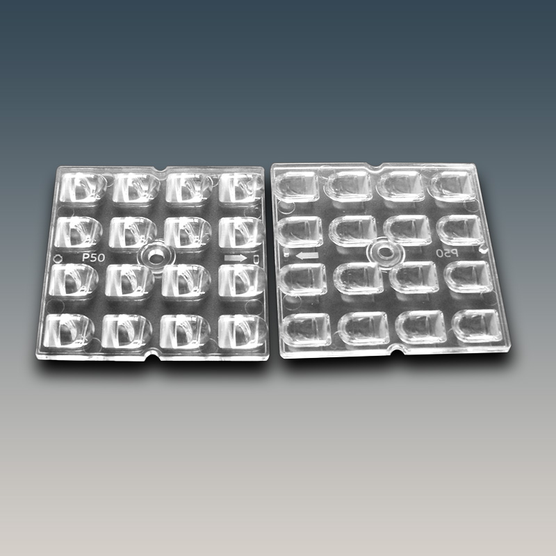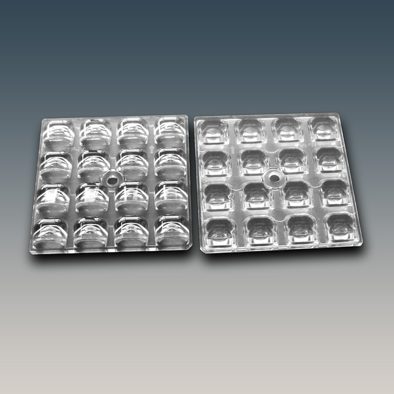 4x4 arrays 50 x 50 mm LED lens for 2525, 3030, 3535 LEDs, suitable for flood lights, tunnel lights, stadium lights, parking lot lighting, and high bay lighting. (HX-F4x4-xx Series)