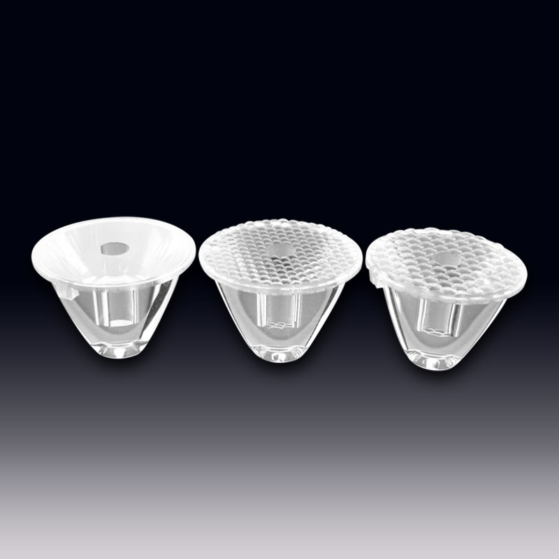 Single ∅26 to ∅30mm optical LED lens. All subfamilies have the same dimensions, excellent optical performance, and high cost-effectiveness. They have a wide selection of beams from narrow to wide flood. Perfectly compatible with CREE XQE, XPE, XHP35, XML, XHP50, XHP70; MTG OSLON Square, P7, P8; Seoul Z5P, Luxeon T; Samsung 3535; Nichia 119A, etc. 3030 3535 5050, 7070, 9090 RGBW LEDs. Widely used in basketball court lighting, gymnasium lighting, badminton court lighting, volleyball court lighting, underwater lighting, outdoor landscape lighting (or lens), security equipment, traffic display lighting (or lens), electronic components, automotive lamp lenses, beam lamp lenses, surgical shadowless lamps, and stage lighting.