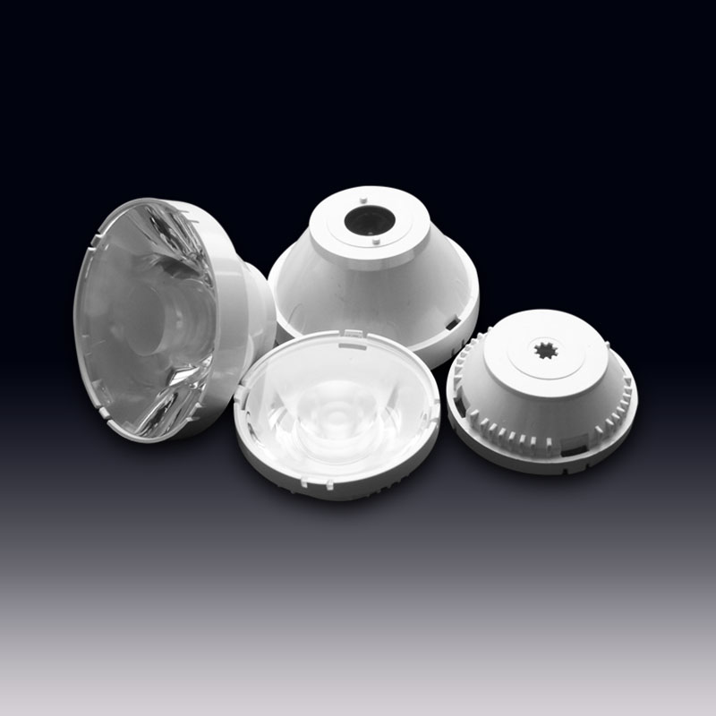 99. 3535 RGBW Lens: 4-in-1 Color Mixing Lens The 3535 RGBW lens (10mm x 10mm) combines four channels (red, green, blue, white) into a single 120° beam, ideal for dynamic color lighting. The PMMA structure (92% transmittance) ensures uniform color mixing, with heat resistance up to 80°C. Technical specs: compatible with 3535 RGBW SMDs, snap-in installation, and anti-yellowing treatment. Used in stage lighting, architectural facades, or smart home systems. 100. Optics for Cree XPH 352 Hi LED Designed for Cree XPH 352 Hi LEDs, this optical system includes a 25° collimator lens (30mm diameter) and aluminum reflector, enhancing light output by 85%. The PMMA lens (92% transmittance) and 95% reflective aluminum create a precise beam for spotlights or projectors. Technical specs: heat resistance up to 90°C, snap-fit mounting, and compatibility with 10W-20W Cree LEDs.