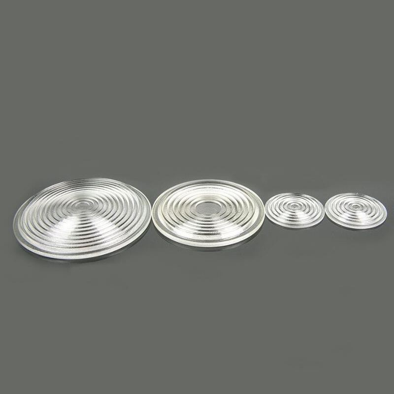 Fresnel lens is used for LED light source to increase light efficiency and brightness. Compared with the same lens and LED light, the focal length and distance are different, and the angle of outgoing light can be set arbitrarily. Single light or multiple array LEDs The lights can be designed according to the needs. The size of the lens can be designed according to customer needs, and the light output angle can be adjusted to reduce the cost of mold opening. Precise machine tool processing realizes the accurate transmission of light. Features: Fresnel lens has the advantages of ultra-thin structure, super large size, ultra-light weight, arbitrary shape cutting, excellent light transmittance, low price, light and easy to carry, etc. It has more advantages than traditional convex lenses, and its weight is less than Convex lens, suitable for many occasions. Widely used in: LED floodlights, colorful floodlights, lighting, landscape lights, signal lights, wall washers and other lamps.