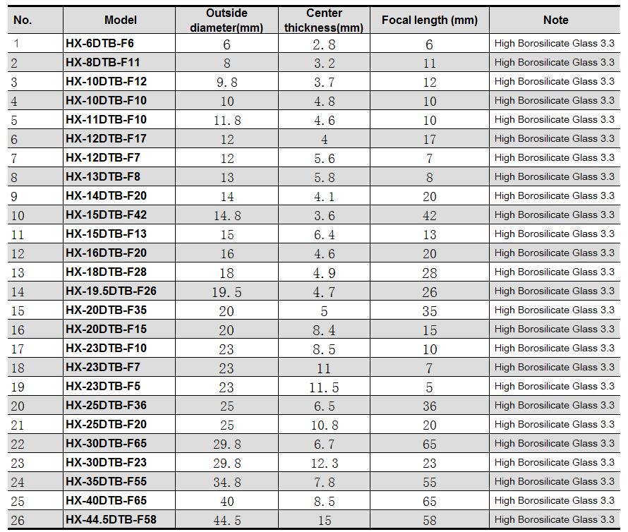 1. Material: Optical glass (high borosilicate, K9, BK7, BK270)